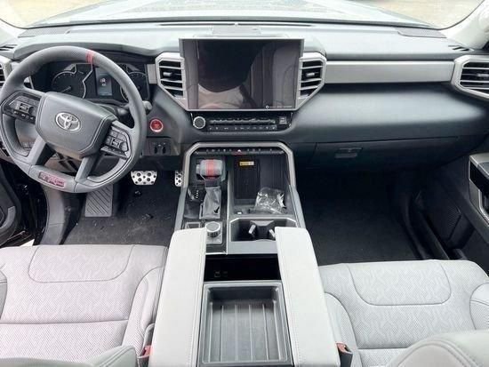 2023款丰田坦途的内饰设计也采用了新设计风格,“硬”还是第一感受。无论是平直的线条还是灰白的用料配色,车内的风格都是非常偏向于越野,宽大的悬浮式液晶中控屏幕也是挺抢眼的,根据不同配置也将提供有8英寸以及14英寸的不同配置,就是这个感觉还是很像“大彩电”,只是放在这台车上会显得更协调一些,功能上也丰富了在线车联网以及CarPlay车机互联功能。