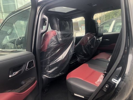 详情请致电VIP:15229029969 齐经理(同微信)酷路泽-VXS帝国版 黑/红配置:20轮,环影,中央差速锁,抬头显示,并道,巡航定速,胎压监测,摇启,无钥匙进入,金属漆,行李架,航踏,拖钩,自适应氙灯,前大灯清洗,全尺寸备胎,后扰流板,四驱空调,真皮座椅,前座椅记忆,前后座椅通风加热,电动天窗,电动折叠记忆加热防炫目后视镜,JBL音响,导航大屏,DVD播放系统,冰箱,后娱,雷侧,第三排座椅电动,坦克调头,蠕行模式,无线充电,车身彩条,驾驶模式选择,70周年纪念,TEMS丰田电子模组悬挂,电尾门,镀铬防护条,镀铬门把手,定速巡航,蓝牙耳机,VSC 车身稳定系统,ATRC主动牵引系统,TSC拖车控制,DAC下坡辅助,ABS 防抱死系统