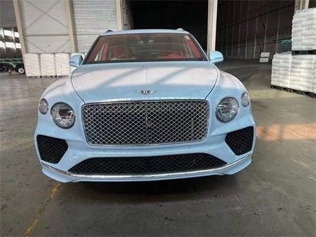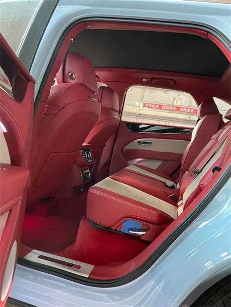 宾利添越绚蓝/亚麻白配热刺红配置:金属漆,颜色包,前排舒适座椅包,黑色钢琴内饰板,撞色缝线,21寸轮毂,加热双色方向盘,刺绣宾利徽章,氛围灯。