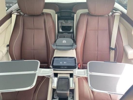 2023款奔驰迈巴赫GLS600其中第二排独立座椅相比普通版GLS更为靠后,同时还带有巨大的腿拖,而中央部分则是由控制台、储物空间和手机无线充电台等进行贯穿,并呈现出了类似于 迈巴赫S级 (配置|询价)相同的头等舱设计。