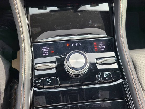 铂金质感中控旋钮, 典雅精致。 侧面花纹巧思致敬Jeep标志性的梯形轮眉线条。 匠心独韵。 浑然天成。