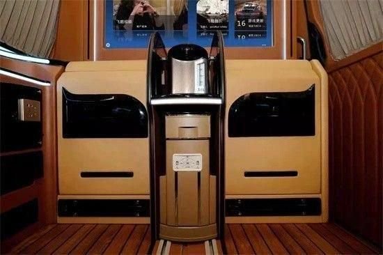 既可以定制,也可以有现房、样本房,哦不对,是现车和样车。文中图片是个性化定制好的实车,布局风格采用的是经典的7+2布局方式。整车核载7人,驾驶舱与后面的商务舱通过隔断隔开,给后面的商务舱提供了私密空间。但又没完全隔开,因为宽屏曲面网络电视是可以升降的,降下来之后,前后舱可以直接沟通。一体式的吧台隐藏着两个翻折式座椅,可供航空椅上的老板放脚用,也可以临时开会对坐用。对坐当然少不了收缩式的小圆桌。 购车热线:18812637416刘经理 (同号微信)