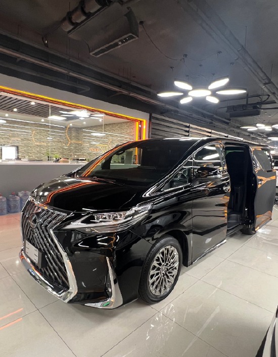 2023款雷克萨斯LM350硕大的车标LOGO取消了代表混动系统的蓝底色元素,加上两侧狭长且锐利的矩阵式大灯,从而给人一种稳重且大气的视觉感受。侧面车身车窗周边镀铬饰条的装饰,以及下方密条辐镀铬轮辋,一定程度上提升了整体的精致感。