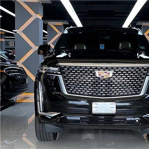 23款平行进口凯迪拉克凯雷德 采用大尺寸的黑色进气格栅连接两侧大灯,内部采用蜂窝状的设计,大灯轮廓也采用了黑色饰条进行点缀,同时,下包围用黑色装饰条,贯穿至两侧獠牙式的LED日间行车灯,减少大量银色镀铬装饰,改为黑色细节点缀。