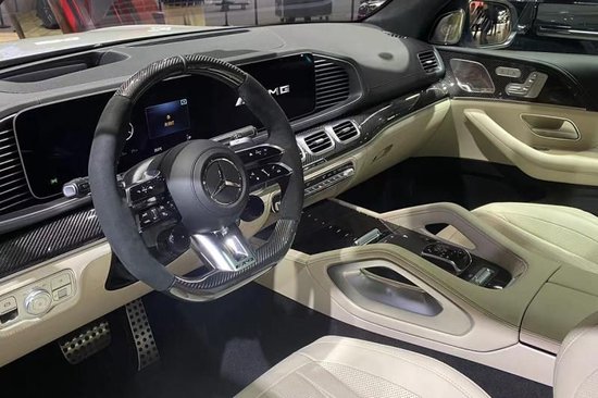 内饰方面,全新AMG GLS 63内饰同样十分有看头。整体设计和用料等方面都非常显高级,方向盘采用的是金属装饰,看上去十分运动。中控台、门板以及中央扶手等区域都配有大面积高光柠木饰板,整体也有些复古感。此外,内饰多处还配有“AMG”字样的装饰条凸显其身份。