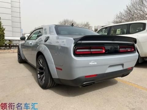 23款道奇挑战者SRT地狱猫车头来看两个大灯如鹰眼一般锐利,全身灵活的线条溢出了一股灵气。如果你喜欢激情,喜欢跑车,喜欢速度,这款道奇挑战者宽体红眼猫是不二的选择。肌肉跑车充满侵略性的前脸是最醒目的地方,如同张着血盆大口的鲨鱼,相当有力量。一体式尾灯采用了164颗LED灯源,尾翼提升了它在高速的稳定性。