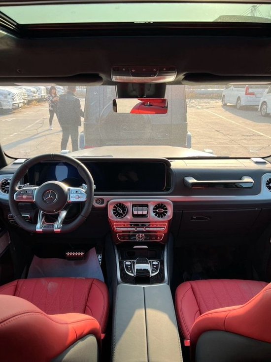 G63内饰方面,新G63保留了新G500的整体设计,除配色差异外,新车还换装了全新造型的平底式AMG运动方向盘,其两侧配以打孔皮质包裹,下部镀铬装饰的造型也与新G 500明显不同,看上去十分战斗。此外,全液晶仪表盘+控中大屏的双12.3英寸屏幕设计在新车上也没有缺席,营造出了浓郁的科技感。