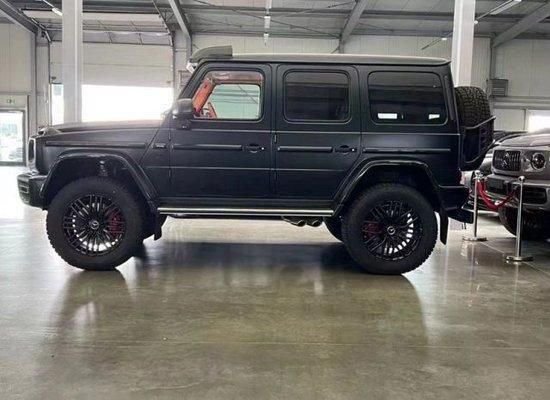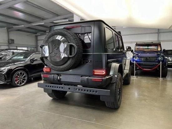 奔驰AMG G 63 (配置|询价) 4X4加宽了轮眉,新增加了车顶行李架,并还设置了专门的梯子可以方便拿取行李,尾部备胎也看上去更大,整个新车离地间隙变得更高,尾部还新增了一个辅助保险杠。肉眼可见的越野性能全面提升。作为全新一代的升级,新车拥有G 63车型的包围和AMG专属的Green Hell Magno车漆,展现出强大的性能。