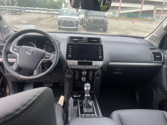 丰田霸道2800 23款 柴油 九气 KDSS 配置:五座、天窗、环影车像、雷测达距、底盘升降、方盘向加热、前座通椅风加热、后座加椅热、JBL音响14扬声器、KDSS、车保道持辅助系统、车载冰箱、双差速锁、多地形检测、5种驾模驶式、雨传刷感器、LED日间行车灯、同色门把手、自适应大灯、大灯清洗、前后电眼、真皮多功能方向盘、19寸合金轮毂、底挂备胎、定速巡航、雾灯、CARPLAY、9寸多媒体触摸屏蓝牙连接、3区空调、镀边铬框前格栅、黑踏色板、黑行色李架、熏套黑件 !