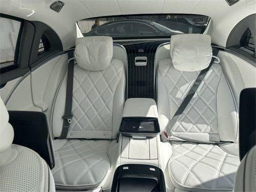内饰的设计风格极度奢华,五颜六色的氛围灯让车内温馨浪漫,中控面板大面积使用钢琴烤漆。后排可以控制前排座椅的位置,头枕的尺寸也挺大的。后排的空间比较宽敞,车内能不动手的都是自动控制。后排的杯架带有加热和冷冻。氛围灯的颜色也可以自由变化,氛围灯让车内倍感温馨浪漫。车顶的阅读灯也很漂亮,真皮的座椅宽大舒适柔软,后排的中间是一台小冰箱,仪表盘使用的是液晶显示屏,两块大屏让车内充满了科技感。座椅的打孔和缝线都很细致,方向盘集成定速巡航和多媒体控制等功能,车门上的拉手和按键质感都很棒。驾驶室的空间非常宽敞,四个车门都是电动开关,迎宾踏板处有迈巴赫的标志,后排的小桌板和小电视都可使用。