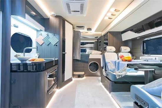 整车外形尺寸为5990mm*2495mm*3200mm,最总质量为4498kg,核载6人,蓝牌C照就能驾驶。在水路方面,配置150L净水箱、80L灰水箱/40L黑水箱、美标食品级进口全自动水路、水箱加热防冻、15m外接水管等;电路方面,配置3000W充逆变一体机、450W的顶置太阳能板、240AH铅酸电池等。支持选配850W太阳能电池板、便携式发电机、洗衣机等。