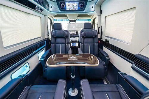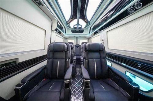 商务房车内饰风格上选择了凸显商务底蕴的深色系,沉稳内敛的黑色搭配富于神秘色彩的浪漫紫,加上环绕车身的装饰灯,七彩星空顶灯更将车内氛围烘托到极致,在川流不息的人群中远远望见一眼,绝对有引人驻足品味的冲动。