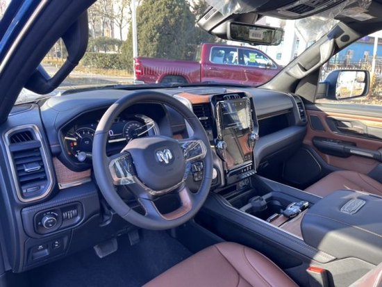 2023款道奇公羊运动版皮卡在内部设计上还是延续了美式那种比较粗犷的风格,规整的中控台设计看上去比较死板,但丰富的配置会让你不由得为其称赞,中控台的设计简洁硬派,符合公羊的气质,仪表盘底边有花纹,则更加凸显了这款车的文雅性,软性材质的仪表台设计,摸上去手感非常舒服,并无些许生硬之处。