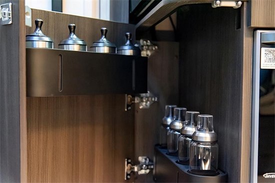 在床位的下方配有洗衣机,采用内嵌式设计,不占用车内空间,平时换洗衣物也很方便。卫生间采用整体式设计,内部空间较为宽敞,设施非常齐全,配有淋浴花洒、洗手池、置物架、毛巾架、浴室镜、房车专用马桶等,顶部还配有换气扇,保证了内部空气的流通!在晚上的时候,冲一个热水澡,消除你在旅途中的疲劳!