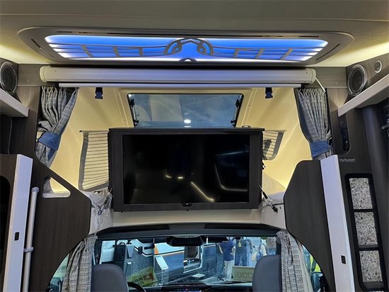 整车外形尺寸为5990mm*2495mm*3200mm,最总质量为4498kg,核载6人,蓝牌C照就能驾驶。在水路方面,配置150L净水箱、80L灰水箱/40L黑水箱、美标食品级进口全自动水路、水箱加热防冻、15m外接水管等;电路方面,配置3000W充逆变一体机、450W的顶置太阳能板、240AH铅酸电池等。支持选配850W太阳能电池板、便携式发电机、洗衣机等。