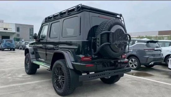 奔驰G (配置|询价)63 4X4加宽了轮眉,新增加了车顶行李架,并还设置了专门的梯子可以方便拿取行李,尾部备胎也看上去更大,整个新车离地间隙变得更高,尾部还新增了一个辅助保险杠。肉眼可见的越野性能全面提升。作为全新一代的升级,新车拥有G 63车型的包围和AMG专属的Green Hell Magno车漆,展现出强大的性能