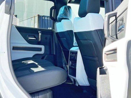 23款悍马EV 皮卡 配置: 照明包(内部环境照明、前部越野辅助照明、带悍马EV标志的投影灯、交换机电源照明、尾门踏步照明)3电机、双电瓶充电线、空气行驶自适应悬架、拖车制动器、无钥匙进入、远程启动、增强型自动、驻车辅助、后方交叉交通警报、安全警示座椅、胎压监测、18寸黑色铝轮、四轮转向、前后超视觉影像、车底摄像头带清洗、超级巡航、天窗、LED货箱照明、三区空调、12项调节前斗式座椅、前排通风加热座椅、电动记忆座椅,加热方向盘、软式后顶盖、多功能尾门、电动折叠后视镜、前后回收挂钩、透明天空面板、GMC信息娱乐系统、WI-FI热点功能、SIRIUSXM无线电功能、BOSE环绕音响、14个扬声器、无线电话、USB充电