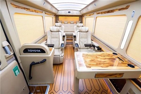 丰田考斯特豪华高档办公桌以桃木及真皮为材料,打造最舒适高端使用的办公环境。360度可选装首长席,双人汇报席,方便旅途中的您进行紧急会议,舒适的座椅,实用的办公设置,贴心的电源以及显示屏设置,华通丰业丰田考斯特高级改装于细节之处展现尊贵风格,在平凡之体现贴心设计。丰田考斯特车内座椅面料考究,前后座椅间适度,座椅靠背角度可灵活调节阔约的头部和腿部空间让乘坐自在舒适。同时,为了满足高端商务接待能力,丰田考斯特推出了不同配置选装包,车内内饰的升级为乘客带来奢华舒适的出行享受。