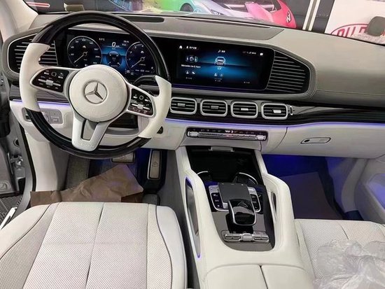23款平行进口奔驰GLS450四座奔驰GLS450车内驾驶舱的多媒体液晶显露屏改成悬浮式造型,并且用全新造型的三辐式方向盘筹划更加年青动感。