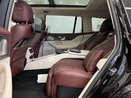 23款平行进口奔驰GLS450四座奔驰GLS450在加长之后,这款车的后座发生了很大的变化,不再像原车型一样,平谈无奇因为加长的缘故,中间做了一个隔断,但是没有浪费这个隔断,