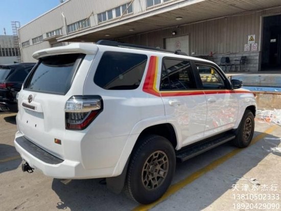 配置:丰田超霸 4.0 40周年特别版白黑 配置:雷达测距、车道偏离系统、并道辅助、天窗、黑色行李架、主副电动座椅、前排加热座椅、方向盘加热、真皮座椅、踏板、到影、40周年纪念版彩条、自动大灯, 8英寸中控屏,拖钩、17寸合金轮毂、防盗螺丝,四季脚垫。4Runner 车身颜色的后门装饰青铜色 青铜缝线换档旋钮 17青铜TRD轮 内部牌匾 车身颜色丰田传统前格栅丰田铜奖 40周年纪念地毯地垫 40周年身体图形 青铜阀座缝合 40周年特别版 40周年纪念座椅头枕罩。 40周年校庆外部徽章 黑色喷漆车顶栏杆