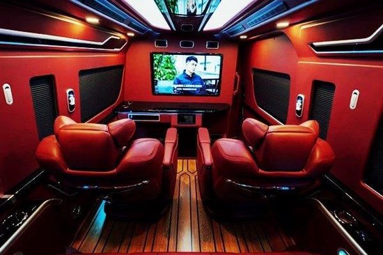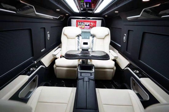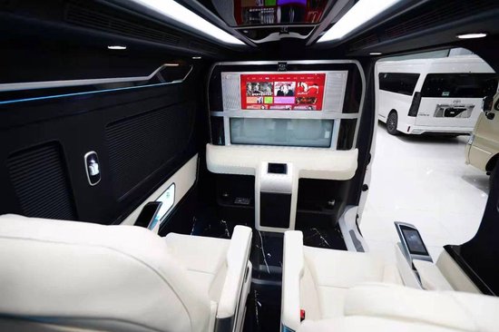 丰田海狮车内搭载42寸高清液晶电视,高级吧台配有液晶触控屏调节车内操作,吧台同时配有隐藏秘书座椅,让商务生活更充实。车顶设计浩瀚 星空顶氛围灯,灯光多色可调。整车内饰车窗选用高级麂皮绒窗帘,柔软舒适。座椅选用高级航空座椅,通风加热按摩带腿托。座椅扶手触感极佳,调节座椅更加便捷。
