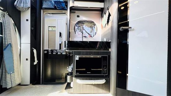 在水路方面,配置300L净水箱、50L灰水箱/50L黑水箱、美标食品级进口全自动水路、水箱加热防冻、15m外接水管等;电路方面,配置6600W逆变功能、800w的顶置太阳能板、奇瑞新能源高压锂电电路系统,总共达到21.5度电