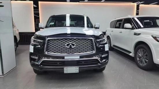 特价!特价!特价!23款中东版QX80 (配置|询价) sensory 7座、22轮、全时四驱、LED大灯、前雾灯、环影、倒影、驻车雷达、脚踏板、无钥匙进入、遥启、电尾门、ICC全速智能巡航、盲点辅助、车道保持、导航系统、真皮实木方向盘、方向盘加热、方向盘电动调节、三区空调、电动天窗、真皮仪表盘、实木内饰、真皮座椅、前后排加热座椅、前排通风座椅、前排电动座椅、电动座椅垂直调节、电动后视镜、BOSE音响、无线充电、隐私玻璃 信德嘉库现车
