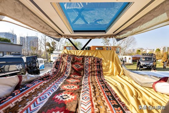 除此之外,得益于安全结实的车身,X500还此阿勇半开放式的升顶设计,前半部分可以完全打开,形成遮阳帐篷的模式,拓宽使用者赏景的便利性的同时,也能提升车内的立体空间。