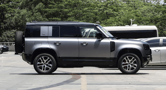 作为一款中大型SUV,路虎卫士尺寸可不小,长宽高分别在5018×2008×1967毫米,车身轴距在3022毫米。侧面是经典方盒子造型,笔直的腰线放在门把手上方,后排提供隐私玻璃,但前排没有配备多层隔音玻璃,稍微有一些遗憾。底部轮毂造型上更具时尚感了,尺寸在20英寸,车顶采用悬浮式设计,提供了行李架,实用性上不用担心。