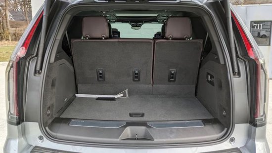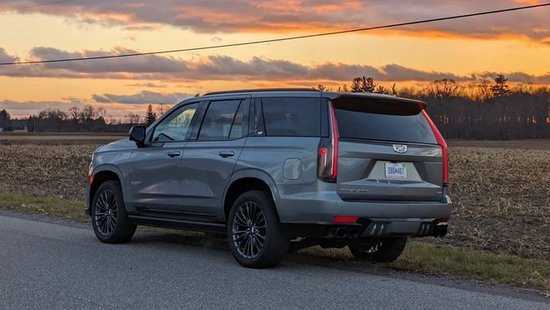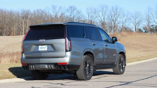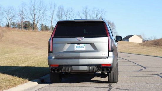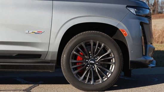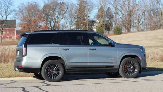在车身侧面,美系全尺寸SUV标志性的巨大方正线条,没有明显的变化,有着出色的视觉冲击力,也相当突出力量感。悬浮式车顶设计增添了一丝时尚的感觉,车门下方的V标显示了性能版本的身份,大尺寸轮毂也强化了运动的属性,红色的刹车卡钳更是形成了补充。