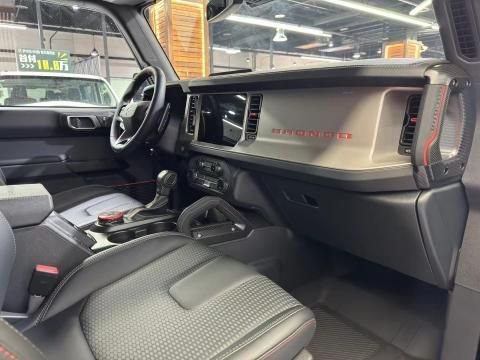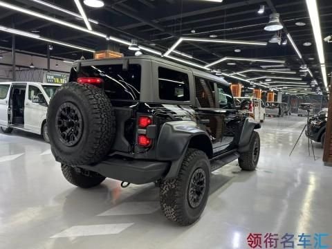 23款福特烈马猛禽 (配置|询价)版的身材显然比原来普通版福特烈马bronco 看起来更壮实了,因为猛禽版尺寸略有变化,更关键的是轮距扩大,宽大的感觉甚至超越牧马人 (配置|询价)。车辆底盘悬架离地间隙也抬升了,目测最小离地间隙已经可以达到350毫米以上,这就相当于原厂升高效果。
