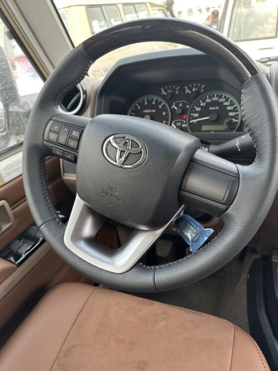 丰田酷路泽LC76 24款 4.0 手动 汽油配置:5速手挡,130L油箱,分时四驱,双差,棕色皮质座椅,16寸铝合金轮毂,2气囊,绞盘,挡泥板,脚踏板,5座,空调带加热,电动门锁,电动车窗,收音机,9寸大屏,手抠箱出风口,巡航定速,轴头离合,前雾灯带LED,后雾灯,卤素大灯,倒车影像,冰箱,涉水器,外挂备胎罩,桃木方向盘+内饰,彩条。