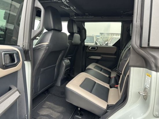 23款福特烈马Bronco车内采用硬朗的设计风格,中控台设计主次分明且有层次感,用料也厚实,多功能方向盘造型运动,中控屏幕采用内嵌式的设计增添了车内的时尚感,按键布局合理,档把设计精致,座椅宽大厚实,空间宽敞,实用性强。