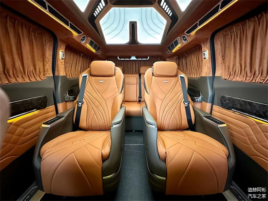 车身尺寸为5009mm*2095mm*2035mm,轴距为2933mm,空间十分宽裕。2.0T L4 6AT配进口英国格莱兰特空气悬挂,2035mm的高度搭配空悬也可以满足2米的限高要求。沃森威尔WOWSEN将其细节和用料做到了十足的诚意。驾驶舱选用NAPPA头层皮和碳纤维的内饰板材,仪表台法式双缝线工艺处理,缝纫细节没有跳针等不良现象。这才是精品定制MPV的制作标准。