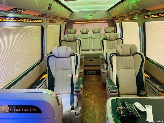 丰田考斯特改装商务车同样可以增加的内饰的装置有,车载冰箱,车内影音系统,地毯可以选择游艇木地毯或者是通道地毯,窗帘也有不同的选择,车内驾驶席的改装设计,司机置物盒等不同的设计方案,丰田考斯特改装商务车所进行的每一步的设计都充分体现了丰田考斯特改装设计的专业性。丰田考斯特改装商务车,成就商务车市场的典范之选。
