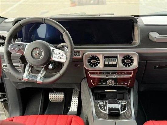 奔驰G63 4X4采用双12.3英寸高清显示屏仪表盘中的信息能够以不同格式显示在双12.3英寸高清显示屏中,3种显示风格可供选择,可更生动地显示车辆功能信息。追逐时间,贯彻如一的坚实风格,黑色高光前栅、镀铬脚踏板、时光印G投影灯进一步彰显座驾的动感性和独特性,更让时间不仅止步于现在。车辆内部同样采用碳纤维来装饰,另外还有采用钻石缝线和纳帕皮革包裹的座椅和Dinamica真皮方向盘。