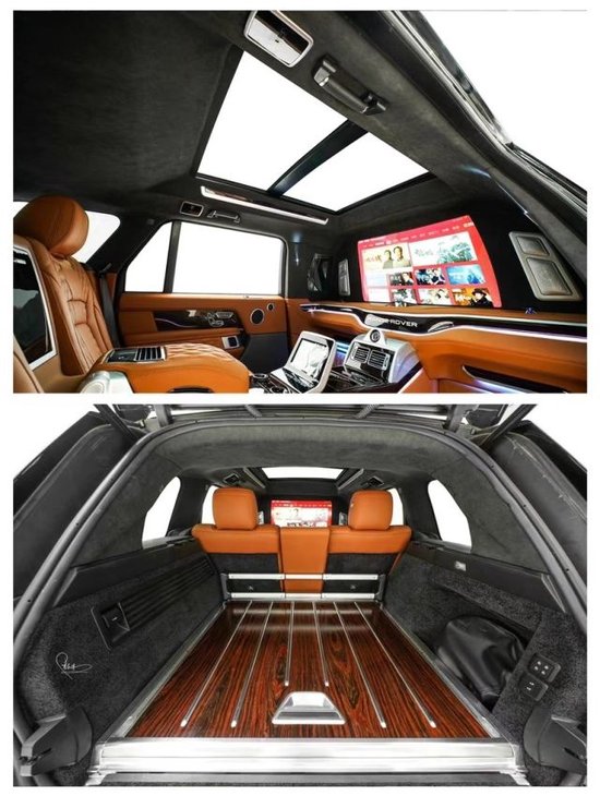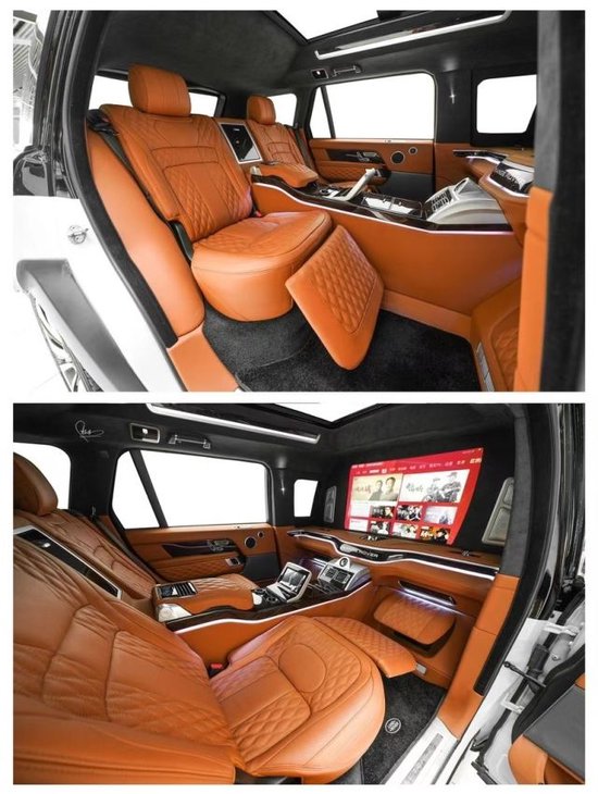 路虎揽胜 (配置|询价)皇家一号配备了BOSE5.1殿堂级影院系统,喝酒K歌绝对毫无压力。后排配备有鞋托,车内底板全部为豪华游艇木装饰。由于是4座的设计,所以说后备箱腾出了比较大的空间,说到底,路虎揽胜皇家一号,还是一个豪华商务越野车。