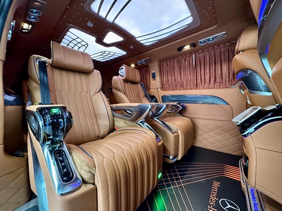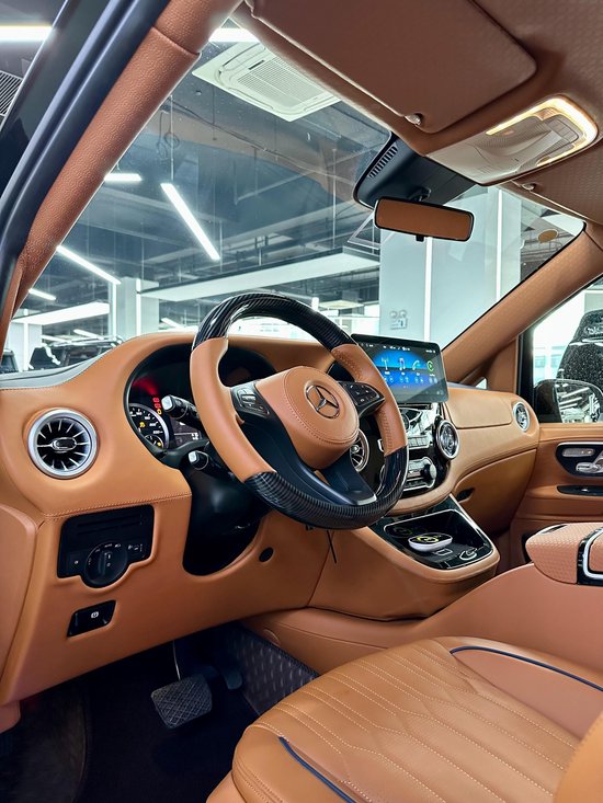 奔驰威霆搭载的是2.0T高功率的发动机,马力211匹,作为一款商务用车,动力也是完全够用的,毕竟商务讲究是舒适性,旅途的稳定性。这款威霆在内饰改装上也是花了大手笔,驾驶室整体nappa皮质的包覆,整个中控台都做了细腻的包覆,其次中央的悬浮屏的中控,跟之前塑料对比,好太多,导航,倒车影像都有的。真皮的方向盘搭配水转印的套件,质感一下子就上来了。而且驾驶舱的座椅都是增加了电动调节,使用起来更方便快捷,跟手动对比好太多了。