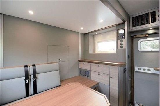 天津嘉德汽车乌尼莫克4X4越野房车箱体采用三明治结构,墙体厚度55(mm)断桥隔热结构,外蒙皮采用超高强度玻璃钢板材,内层为德国品牌玻璃钢内饰板材,箱体与车架的链接采用的是三点无应力式浮动平衡副梁,保证车辆在极限路面上可以剧烈扭动,而箱体则能逆向缓冲扭力,确保箱体及车内绝对安全。车辆尾部顶部 还配有倒车影像系统附有辅助照明,可以选装后绞盘,尾部储物箱,尾部自行车架,尾部油桶架,尾部拖车钩(美式,包括电路改装),尾部沙板+铁楸。