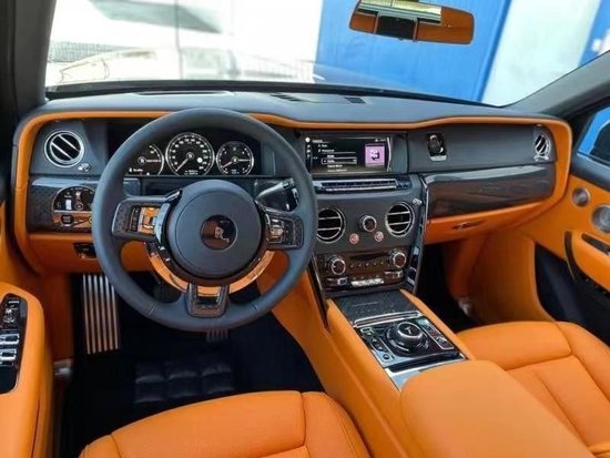 2023款劳斯莱斯库里南车内,采用了大面积皮革和实木饰板搭配的中控台,辅以银色装饰条搭配,奢华庄重的感觉扑面而来。配合方向盘上的实木点缀,既复古又豪华。中控屏幕尺寸为10.2英寸的屏幕,轻触车门把手上按键就可以电动关闭,全液晶仪表盘采用三圆仪表设计,辅以虚拟表盘和指针,兼具现代化的科技感和典雅的复古风格。后排控制台与前部是断开的,在狭窄环境停车后排乘客可以选择任意一侧下车。车身侧面同样配有大量黑色元素,窗线、门把手、轮眉、底裙饰条都是黑色。每侧轮眉各往外突出了4厘米,轮毂尺寸24英寸,熏黑多条幅轮毂设计也很有型。新车依然采用了对开门的风格。后尾部饱满厚重,上方给到了碳纤维尾翼,尾窗下方及牌照区域上方都是黑色饰条。尾灯为竖条方形状,下方黑色包围加双边双出排气更显运动。