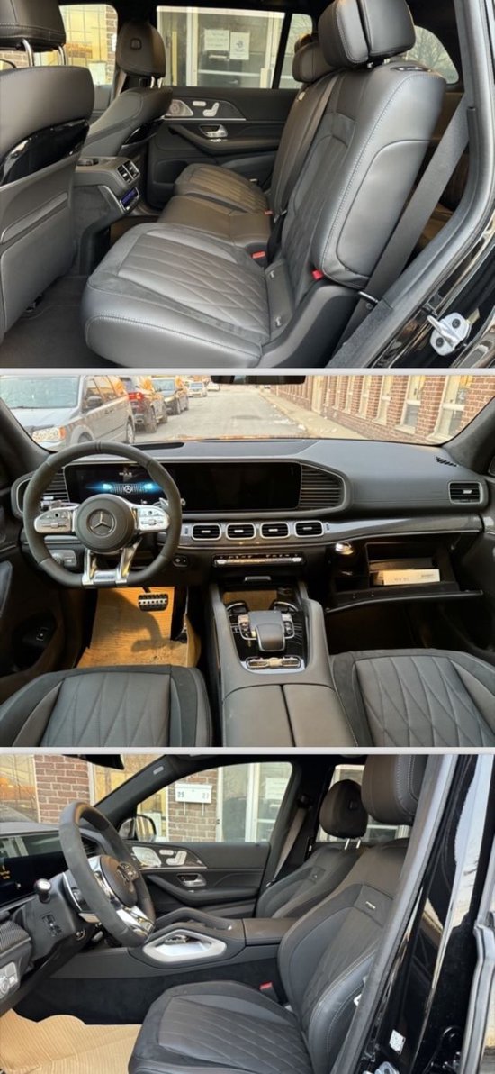 63内饰非常运动,新车采用了AMG家族化的三幅式方向盘方向盘,方向盘的两侧采用了打孔装饰,看上去很有性能感并且很豪华。新车的内饰装饰了大量的氛围灯,前侧的扶手上也配备了氛围灯。新车采用的是连体式大屏的设计,新车的中控台以及前侧地台上的面板装饰也很显豪华感。
