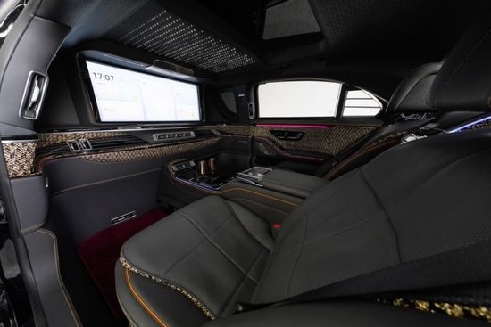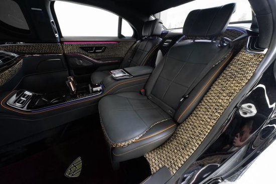 车身内部全部采用高级真皮包裹,细腻的缝合绝对可以堪称世界一流水平,车身采用高科技的防弹材料可以承受一定的爆破冲击力,为乘客的安全提供最高级防内饰上高级真皮、顶级木料、镀铬装饰完美结合