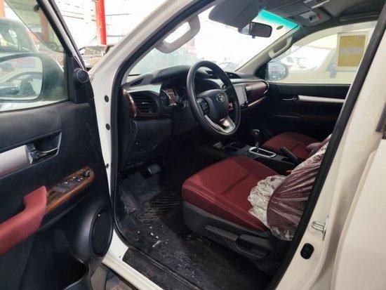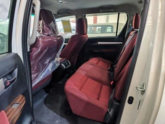 23款丰田海拉克斯2.8T柴油最大功率204马力,最大扭矩500牛米,接角29°离去角27°,长5330宽1855高1815,6速自动变速箱,涉水深度700毫米,离地间隙31厘米,后桥差数锁,车身稳定系统,LED大灯,6寸中控屏,巡航定速,自动空调液晶仪表 胎压监测 遥控钥匙及四门中控 四门电窗 三气囊 多功能方向盘 行车电脑 18铝轮 二/四驱分动 前后保险杠镀铬 6喇叭 踏板 彩条电动调节镀铬后视镜及门把手 镀铬中网 前雾灯 高级织物座椅 数字时钟。