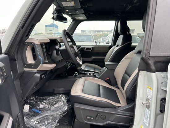 23款福特烈马Bronco车内采用硬朗的设计风格,中控台设计主次分明且有层次感,用料也厚实,多功能方向盘造型运动,中控屏幕采用内嵌式的设计增添了车内的时尚感,按键布局合理,档把设计精致,座椅宽大厚实,空间宽敞,实用性强。
