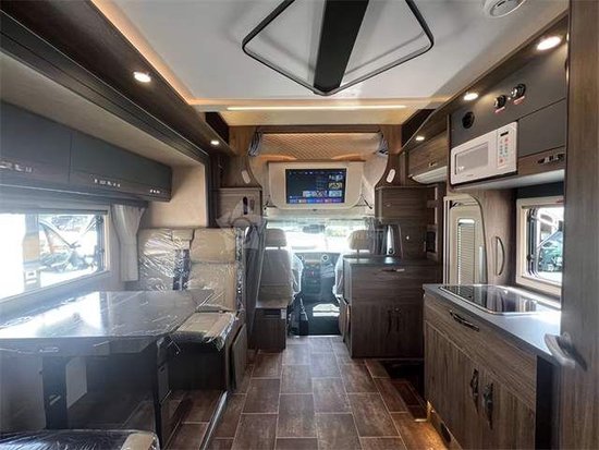 内部采用了E0级的环保板材,整车无异味,装饰看上去更为舒心;车内部分采用中式的家居风格,更符合中国人的审美,会客厅部分采用的是对座式沙发卡座的设计,直径达到了1.95m做到了行业内最宽,两个成年人面对面坐不会碰到腿。车内储物空间同样十分出色,会客厅上方拥有4组吊柜,后尾部3组,沙发卡座下方同样是储物空间,加上超大的储物仓大概拥有2500L的储物空间可供使用。