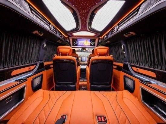 全新奔驰威霆车内全部采用真皮制作,豪华木饰装点,米色与灰色的搭配,整车内饰华贵精美,顶部全车的金色氛围灯与后半部光纤的顶灯搭配,豪华氛围立竿见影,顶部全部麂皮绒包覆,用料可谓下足了成本奔驰威霆商务车,豪华与舒适兼得,尊享精品座驾;奔驰威霆改装高顶迈巴赫VS680商务7座版,完美与尊贵的象征。采用了2.0T的涡轮增压发动机,最大功率211马力,最大扭矩为350N·m。奔驰威霆豪华商务车,外观大气稳重,内饰高调奢华,时尚且不缺乏优雅,如此座驾,能够与您匹配,岂不乐哉?