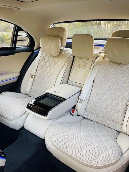 2023款奔驰S580真皮包裹的内饰极度奢华,车门全部使用真皮奉献包裹,中控的连屏设计也很有科技感。 A 柱和车顶都使用了换毛皮设计,真皮座椅也是宽大舒适柔软。内饰大面积使用真皮包裹。后排还配有两个小电视,中控采用 12 英寸的液晶屏。车门的真皮做工非常细致,中间的控制区有两个扶手,我们来到后排看看。