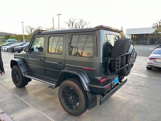 23款奔驰G63 4X4加宽了轮眉,新增加了车顶行李架,并还设置了专门的梯子可以方便拿取行李,尾部备胎也看上去更大,整个新车离地间隙变得更高,尾部还新增了一个辅助保险杠。肉眼可见的越野性能全面提升。作为全新一代的升级,新车拥有G 63车型的包围和AMG专属的Green Hell Magno车漆,展现出强大的性能。