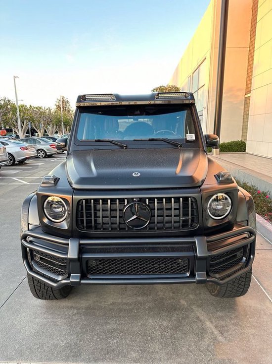 23款AMG G63 (配置|询价) 4×4港口现车,搭载4.0T V8引擎。外观方面,与普通版G63区别在于碳纤维轮拱饰件 、碳纤维备胎罩 、带梯子的车顶行李架等;选Night Package 套件还能得到带射灯的碳纤维车顶扰流。